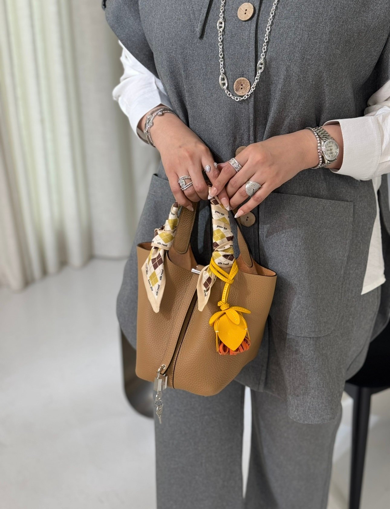 جنطه لون كراميل سايز ١٨