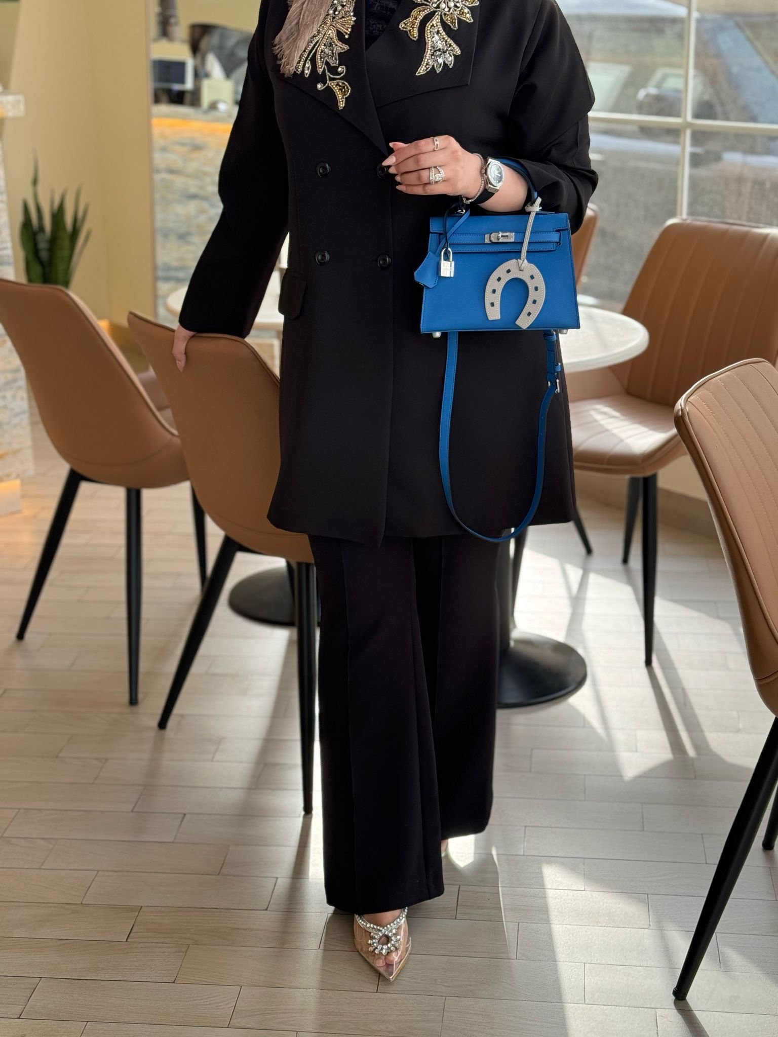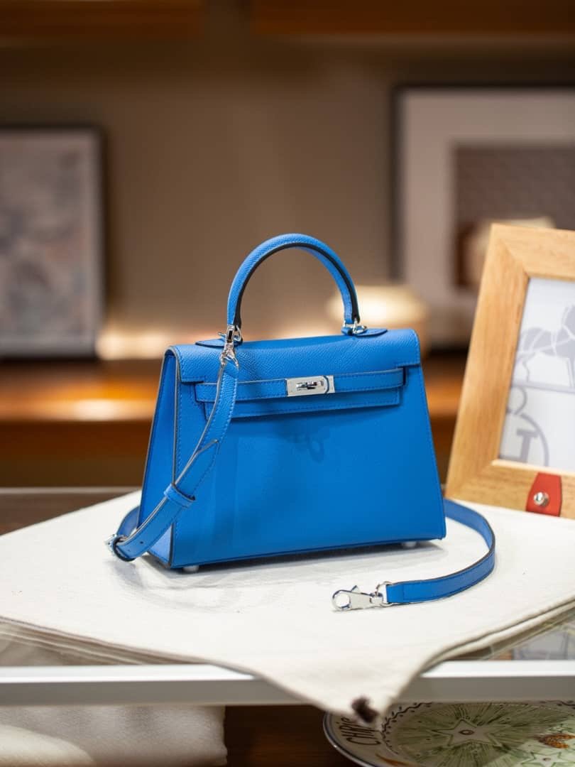 جنطه رويال بلو ( ازرق جويتي)سلفر هاردوير سايز ٢٢سم جلد ايبسوم