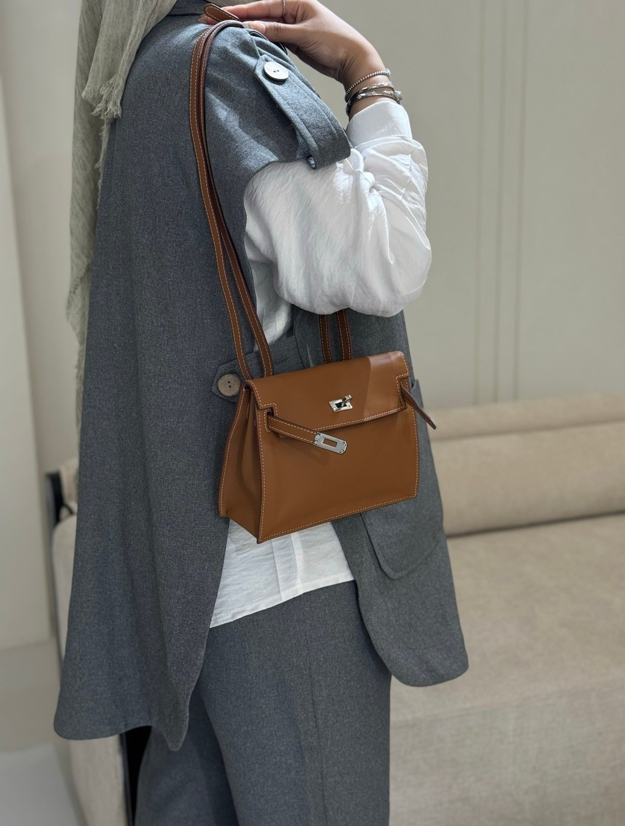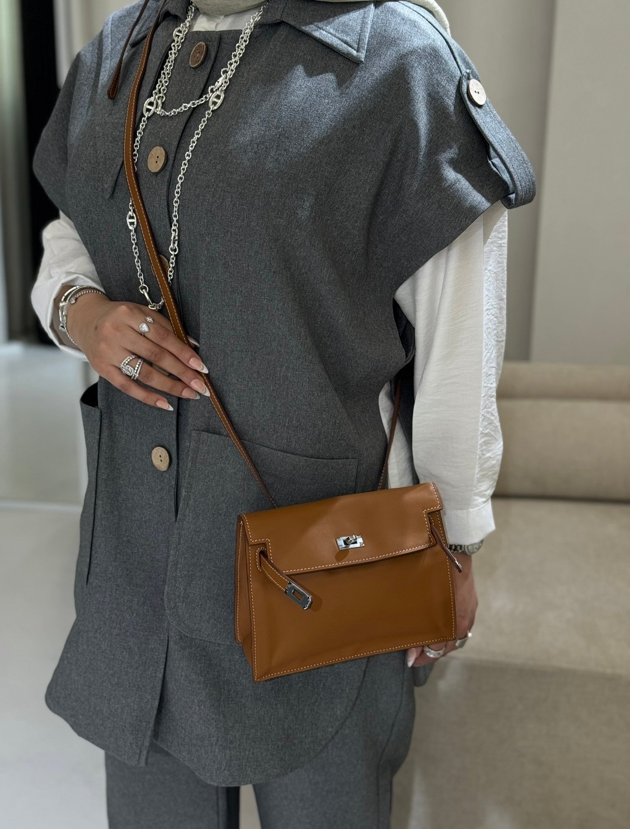 جنطه جلد لون كمل سلفر هاردوير سايز ٢١.٥سم