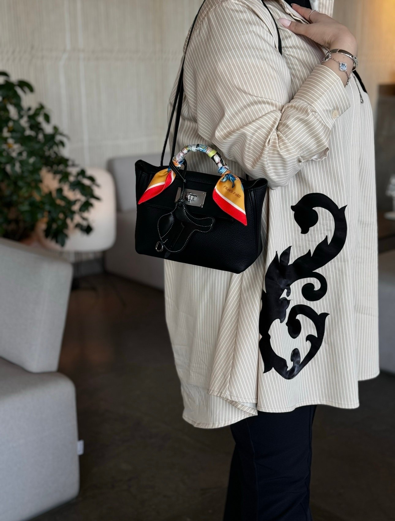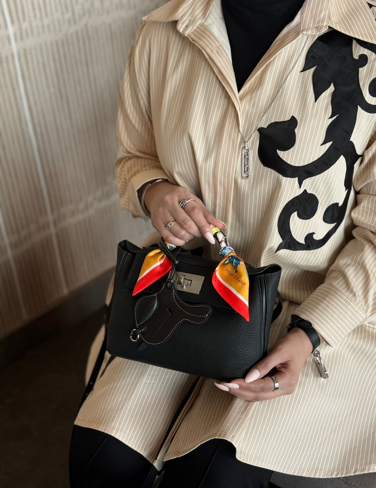 جنطه جلد اسود سايز ٢١ سلفر هاردوير
