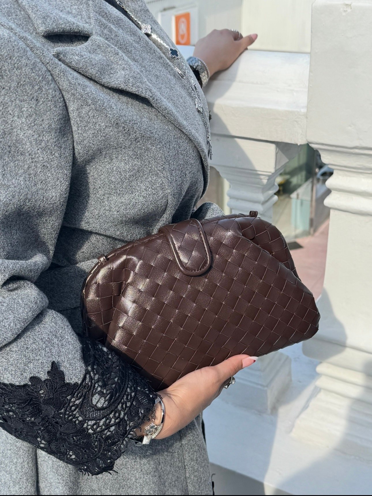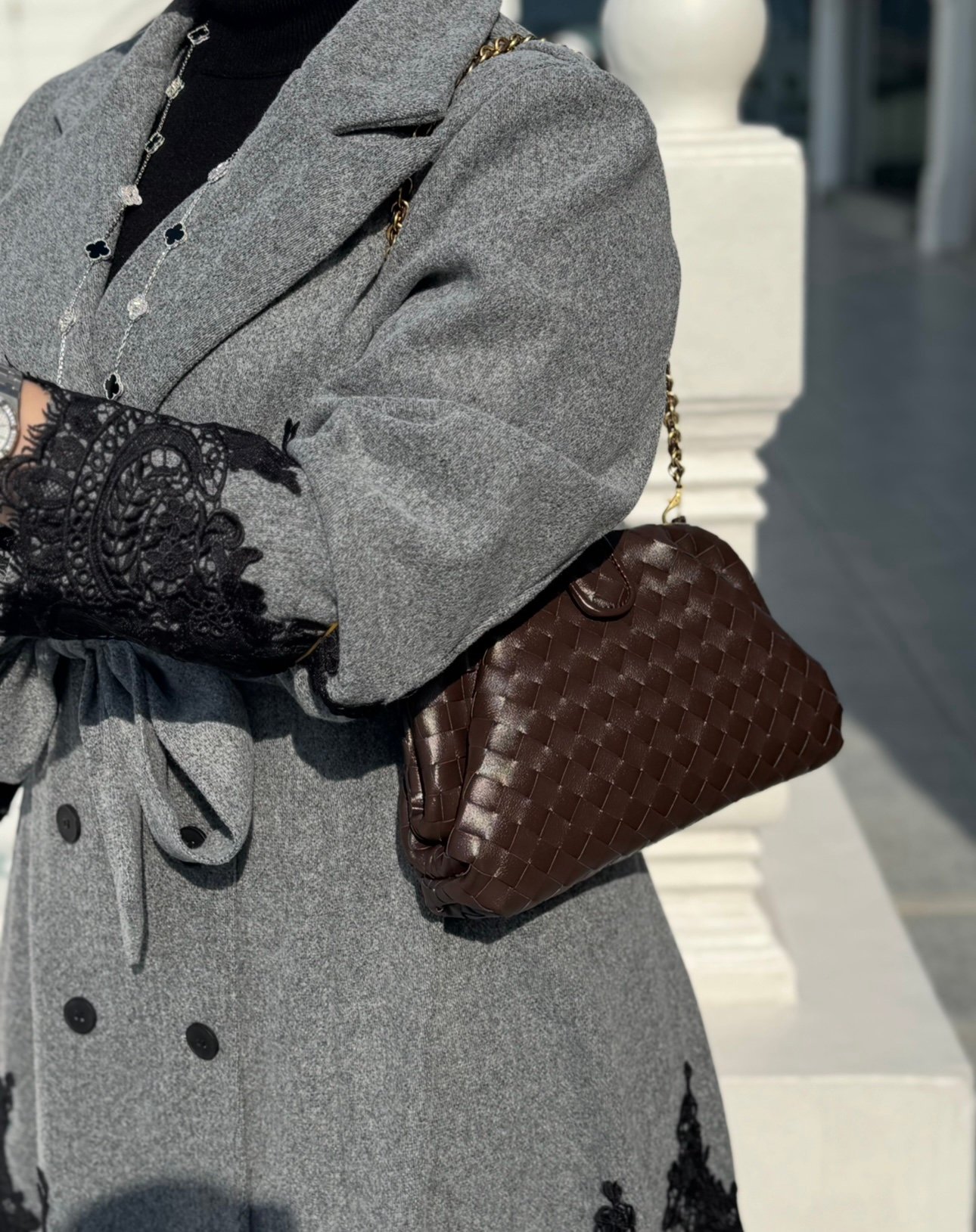 جنطه لون بني مع ستراب سلسله سايز ٢٨سم