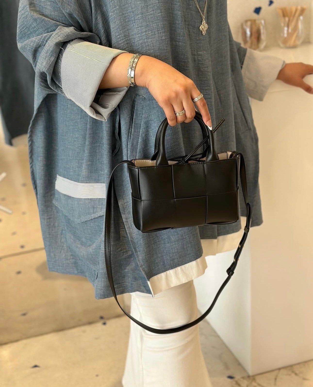 شنطه جلد لون اسود حجم صغير