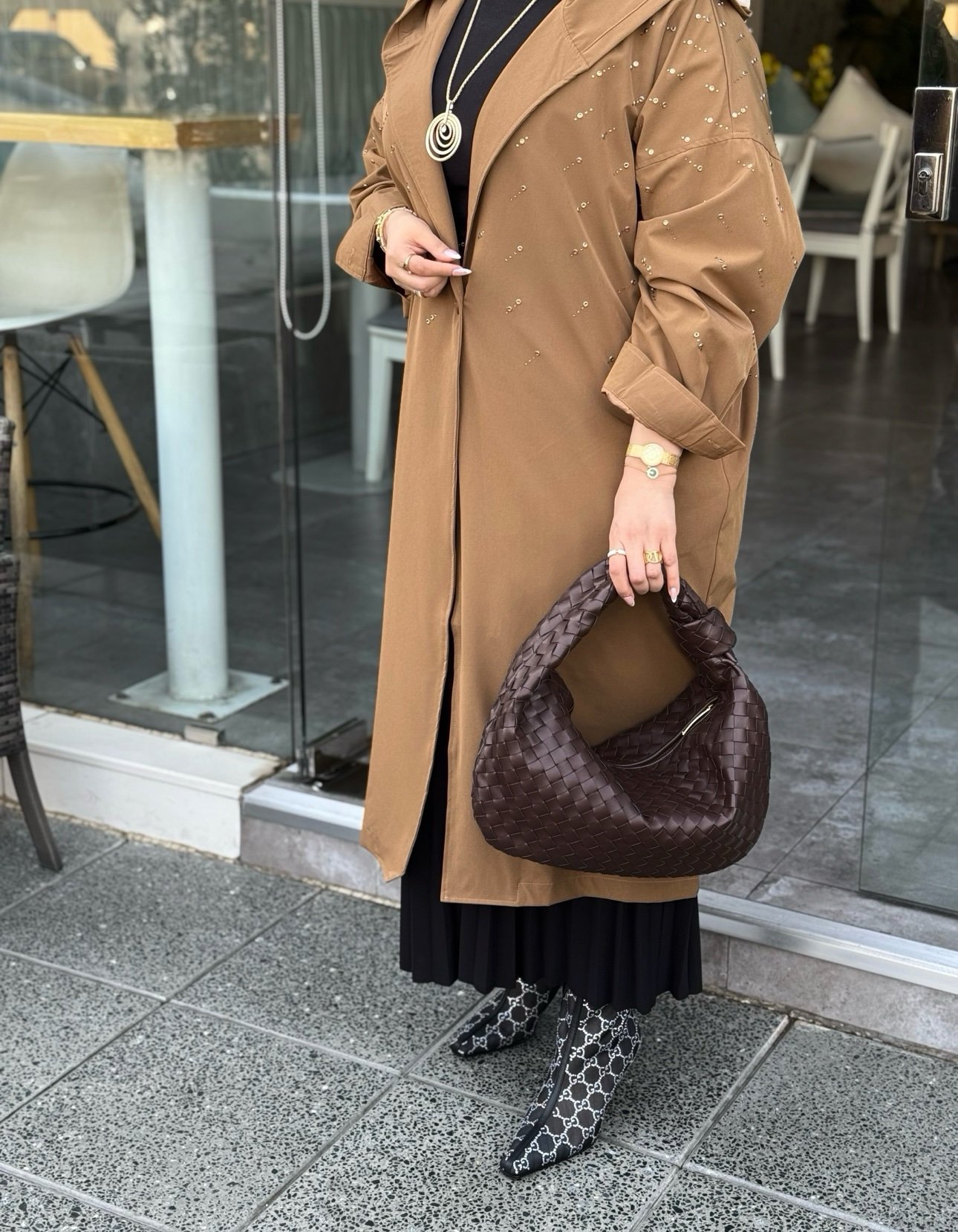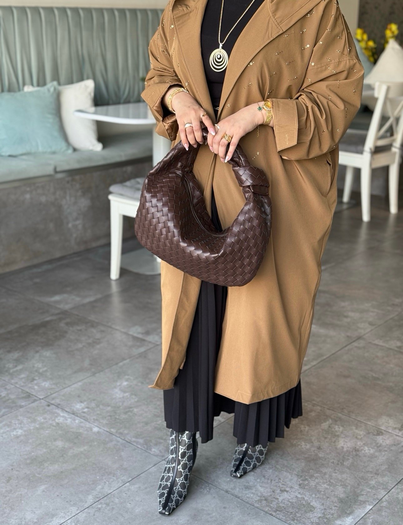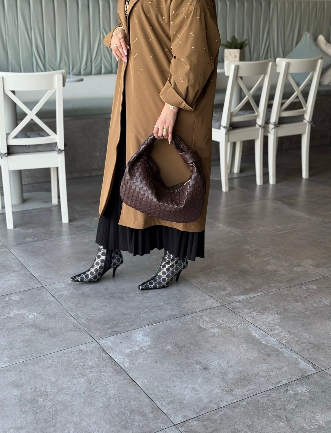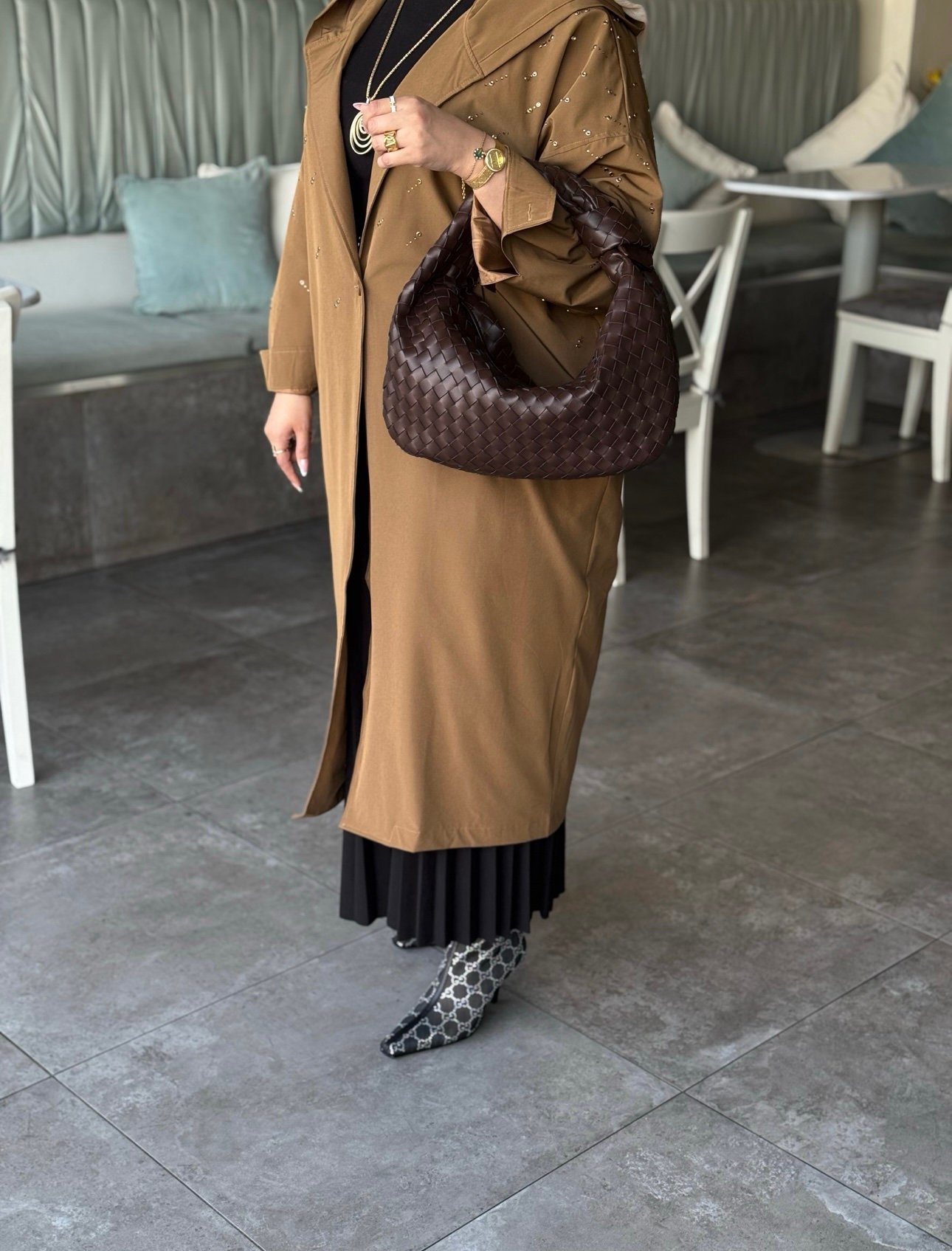 جنطه جلد لون بني حجم كبير