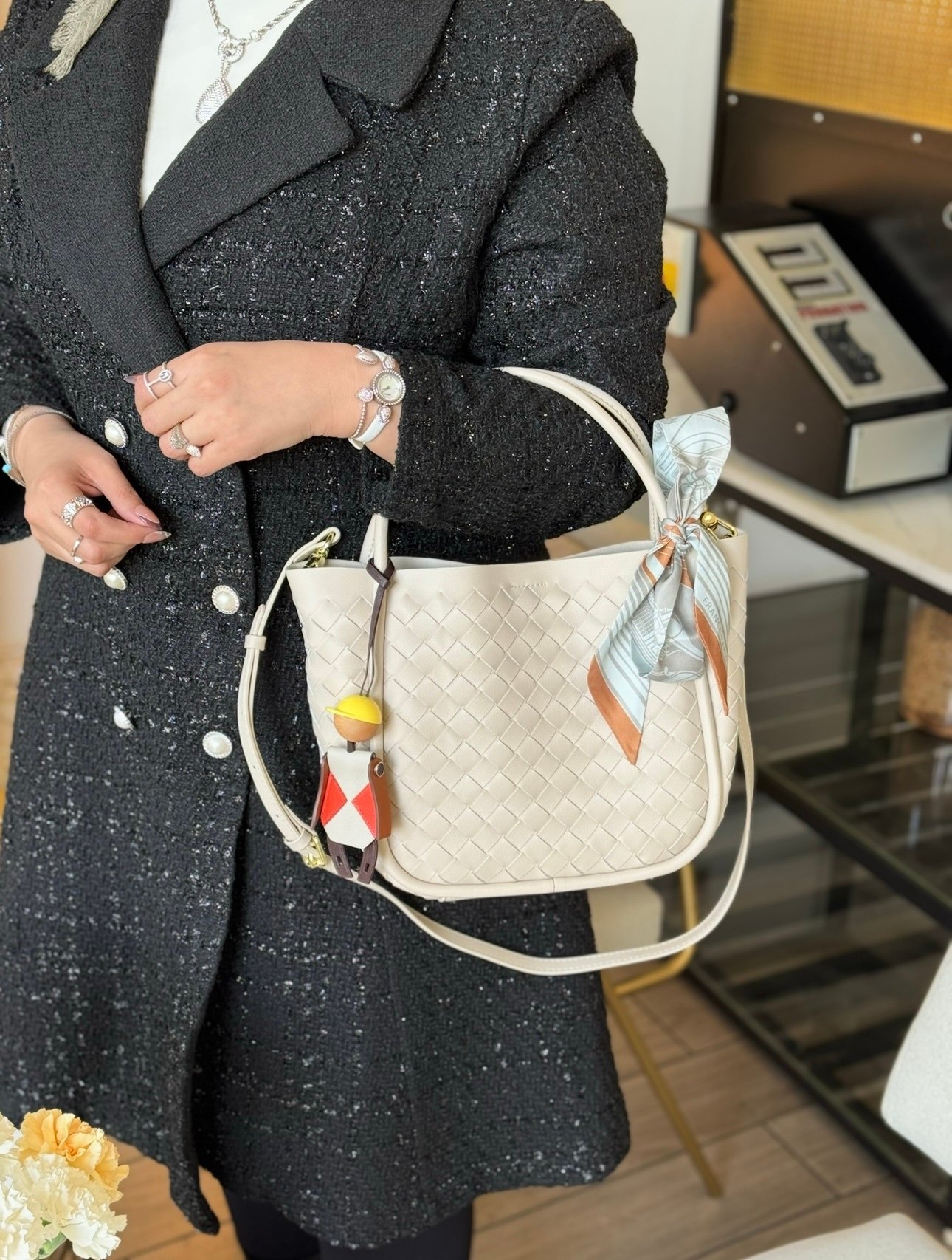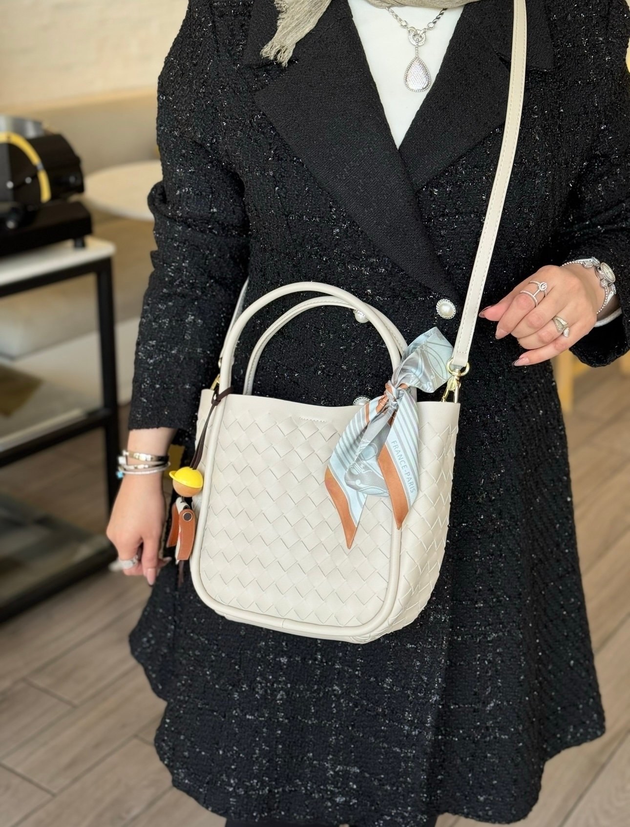 جنطه جلد لون شنط مع ستراب وجنطه داخليه