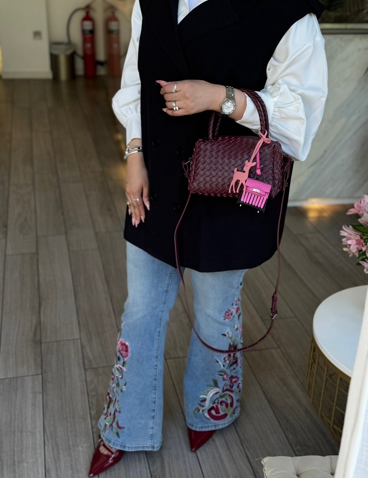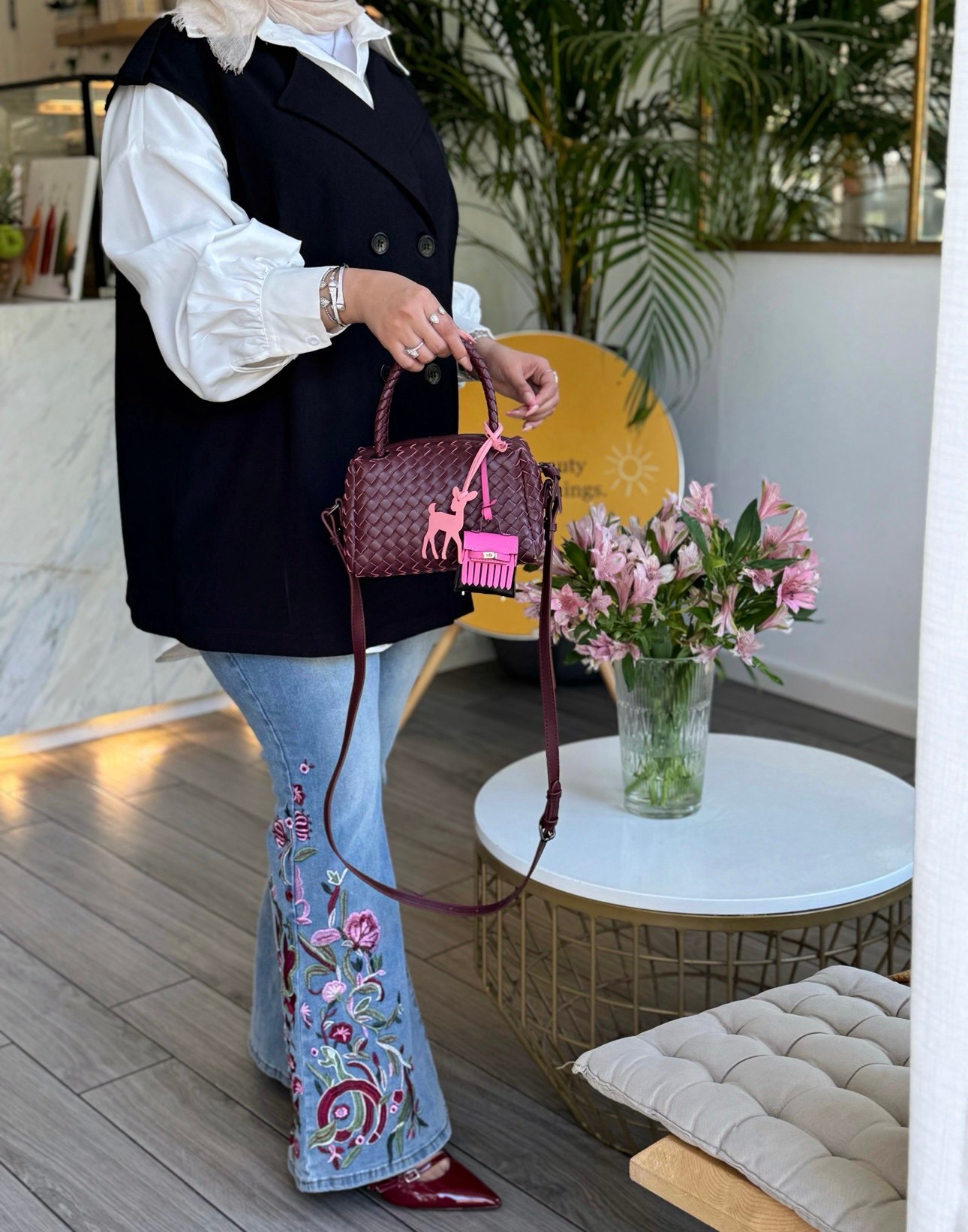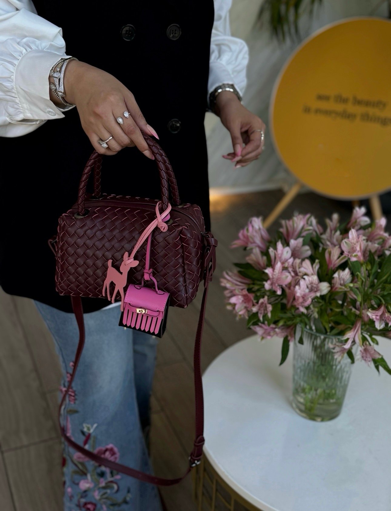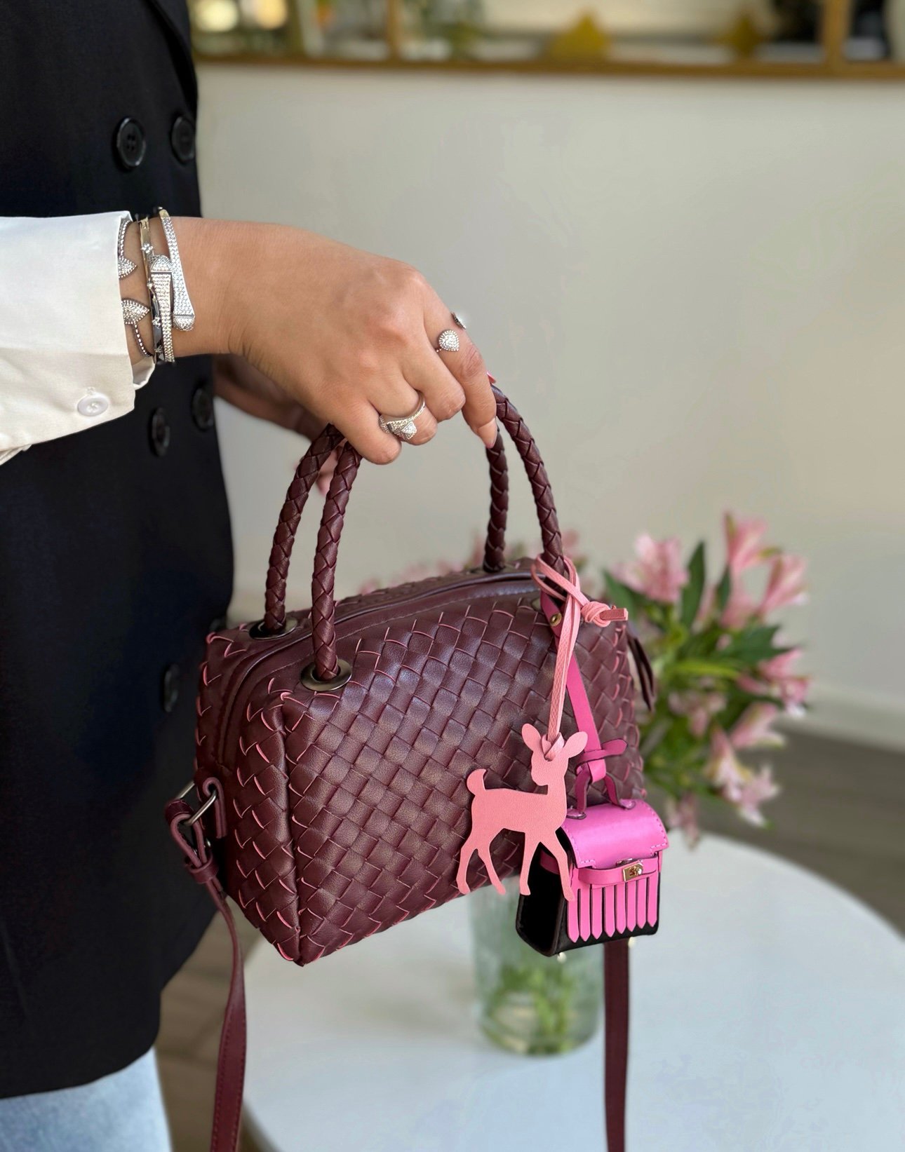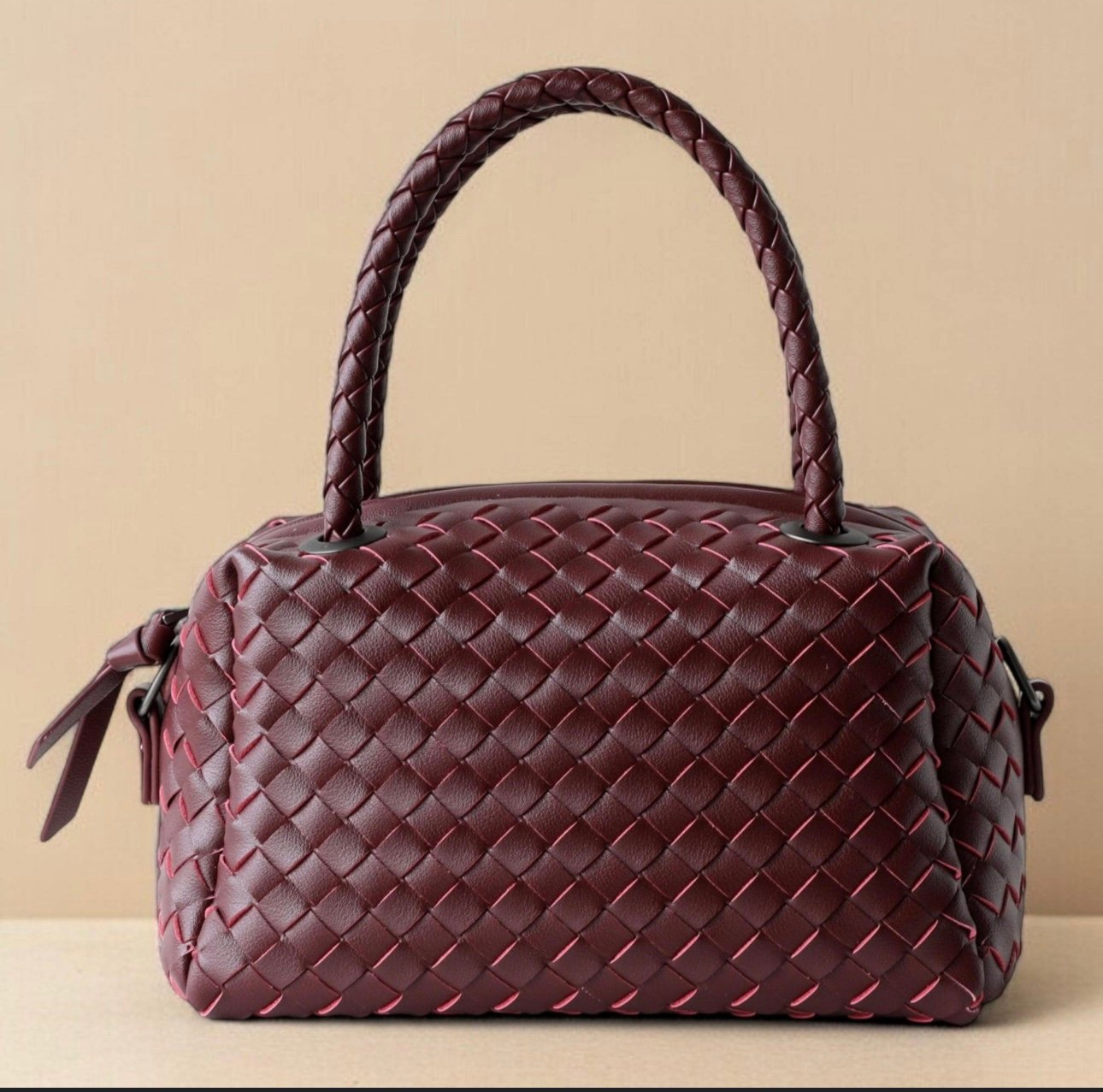 جنطه لون عنابي جلد طبيعي مع ستراب