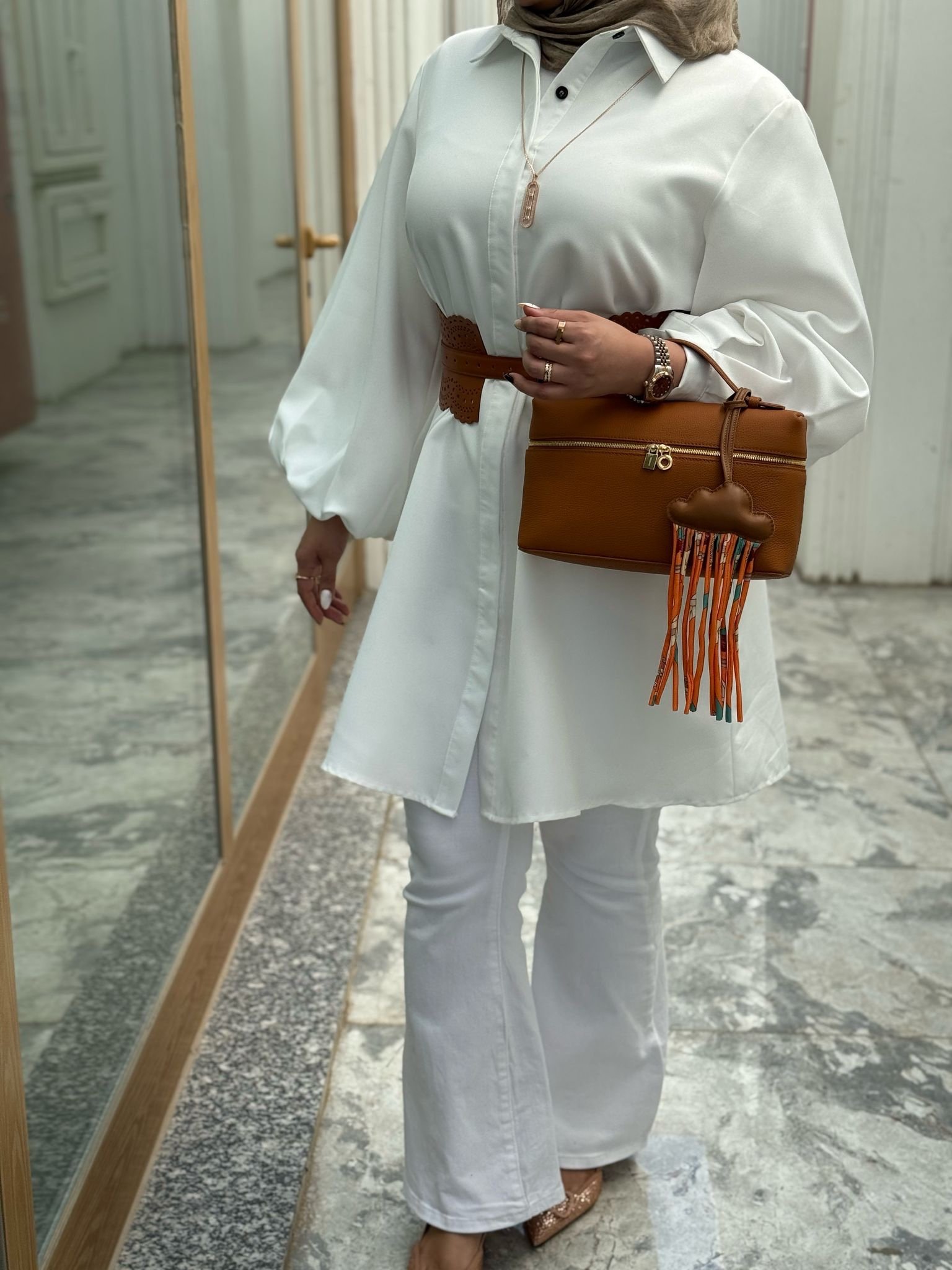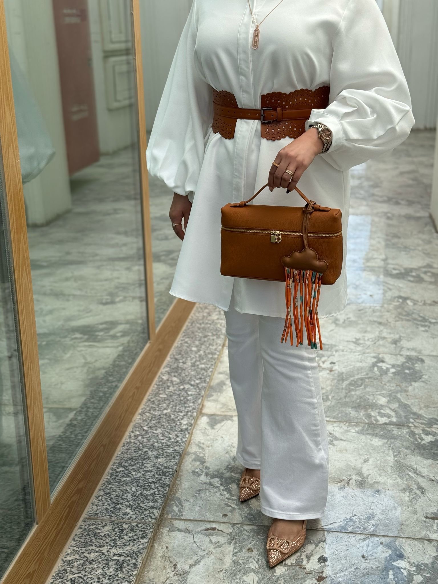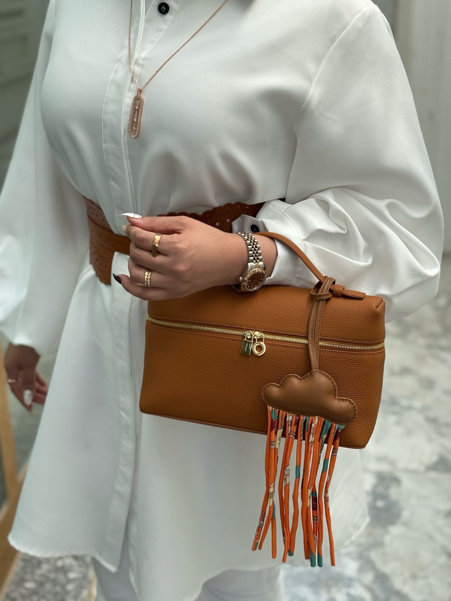 جنطه جلد لون كمل قولدهاردوير سايز ٢٧سم