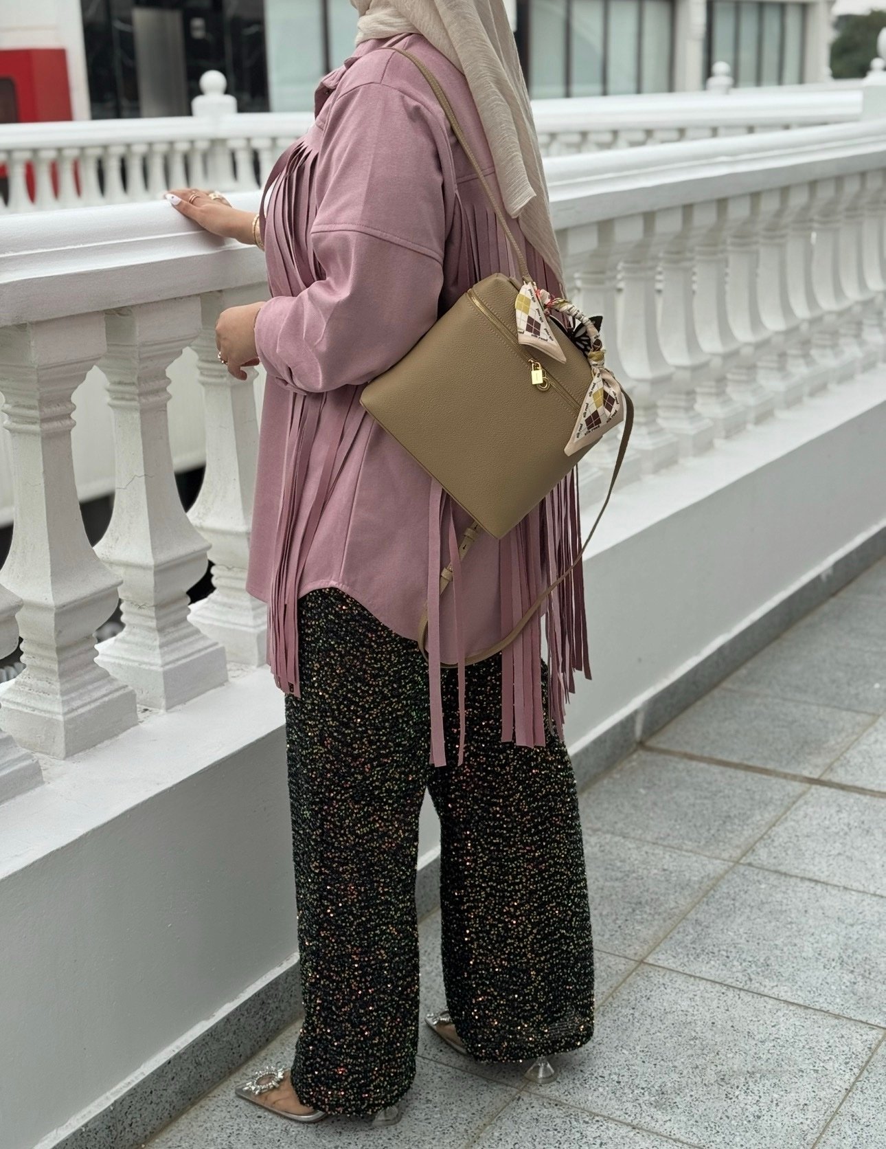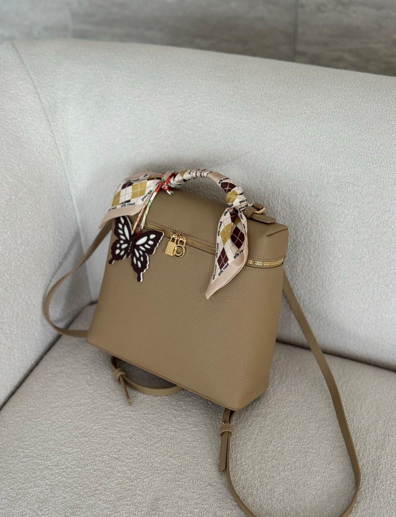 جنطه ظهر جلد لون بيج