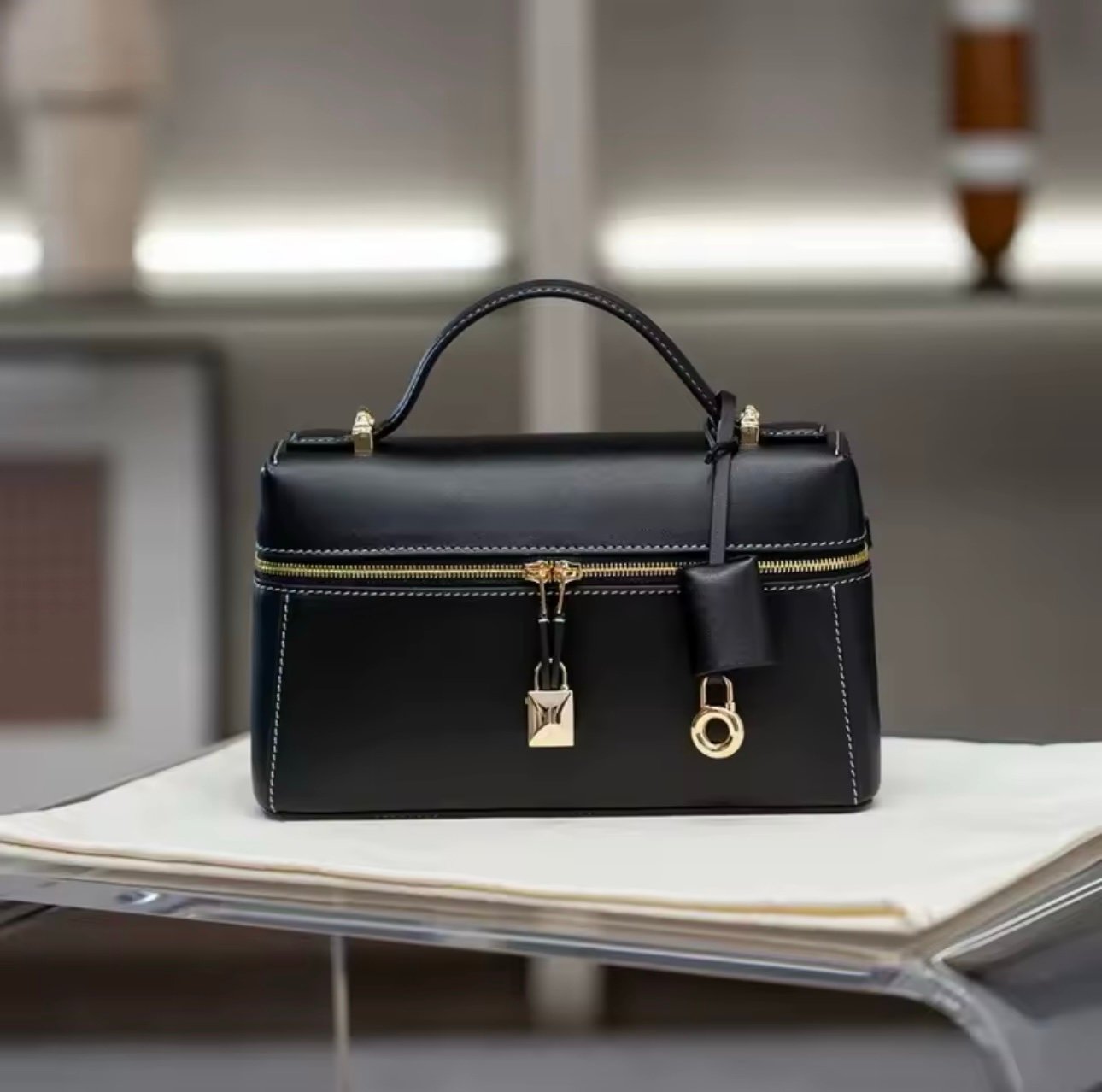 جنطه جلد لون اسود معاها ستراب سايز ٢٣سم