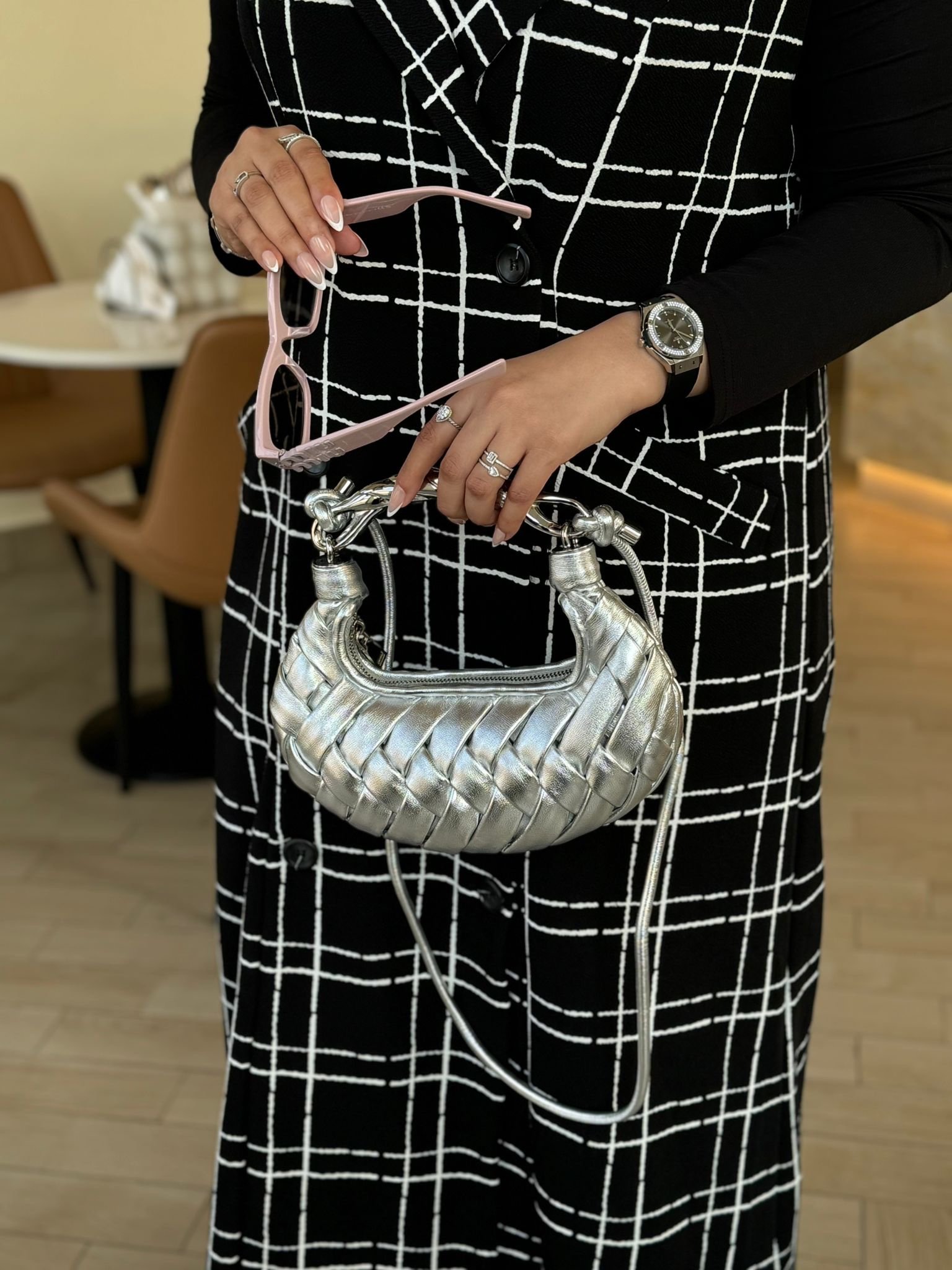 جنطه جلد لون سلفر